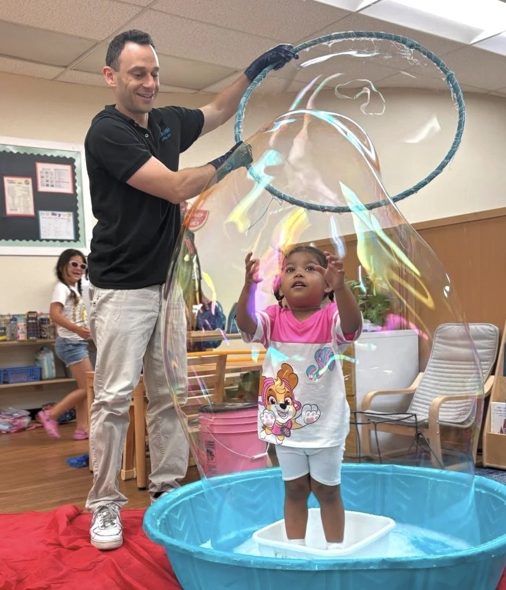 Beyond the visual spectacle, the program introduces age-appropriate scientific concepts such as reflection, refraction, surface tension, and the fascinating properties that make bubbles behave the way they do. The result is a performance that is both entertaining and educational, designed to captivate large groups while encouraging learning through play.